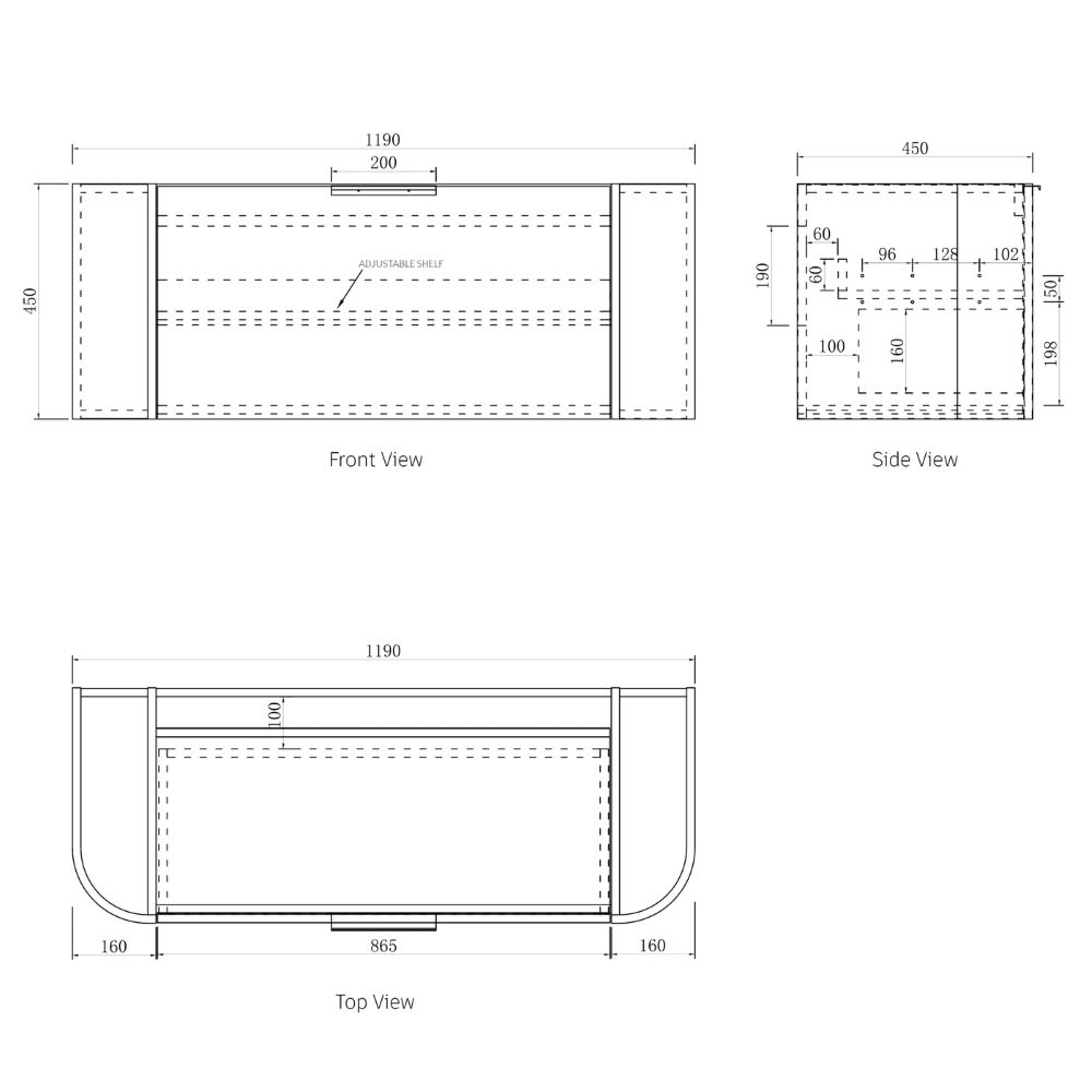 - Cabinet Dimensions: 1190x450x450mm