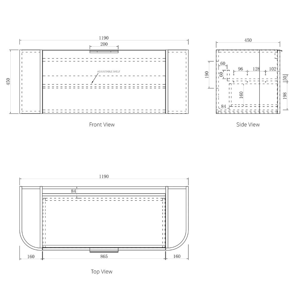 • Cabinet Dimensions: 1190(L)x450(W)x450(H)mm