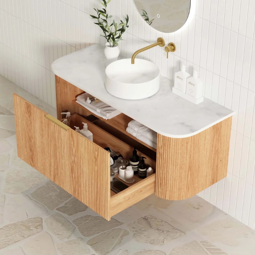 Be the first to review “BONDI FLUTED 1200mm Woodland Oak Curve Vanity, Silicia Free Matte White”