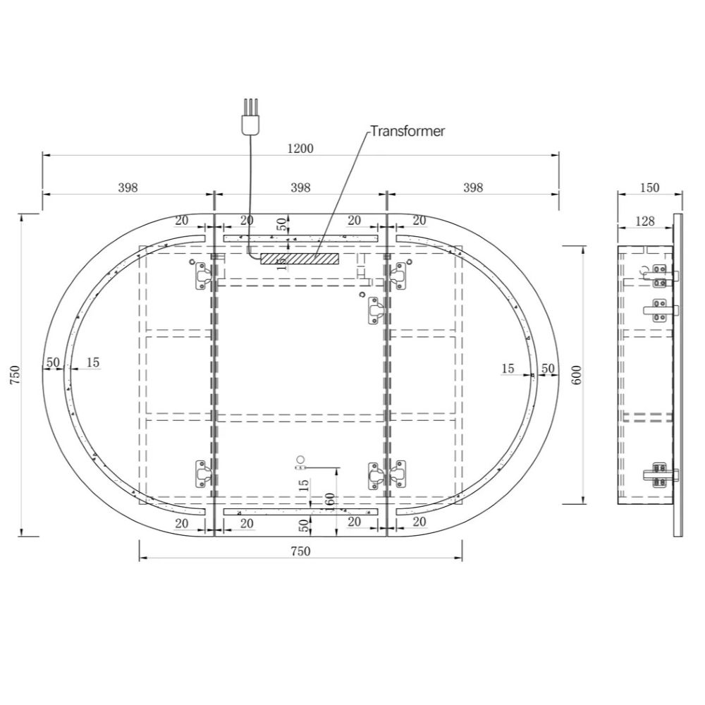 - Cabinet Dimensions: 750 x 600 x 128mm