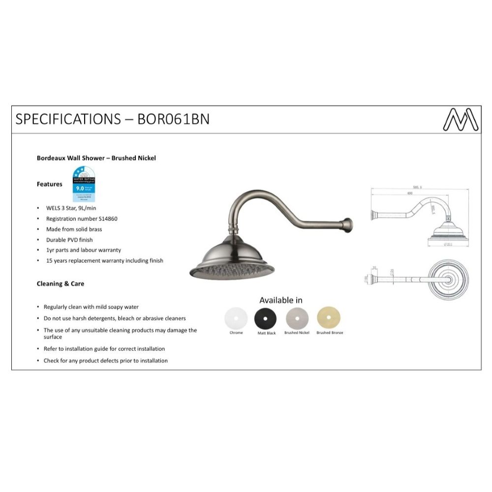 - BORDEAUX Shower Arm with Shower Head