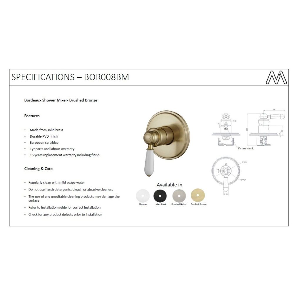 Upgrade your shower with the modern and elegant BORDEAUX Shower Mixer TRIM KIT in PVD Brushed Bronze. This kit includes only the necessary components for a stylish makeover, perfect for adding a touch of sophistication to your bathroom decor.