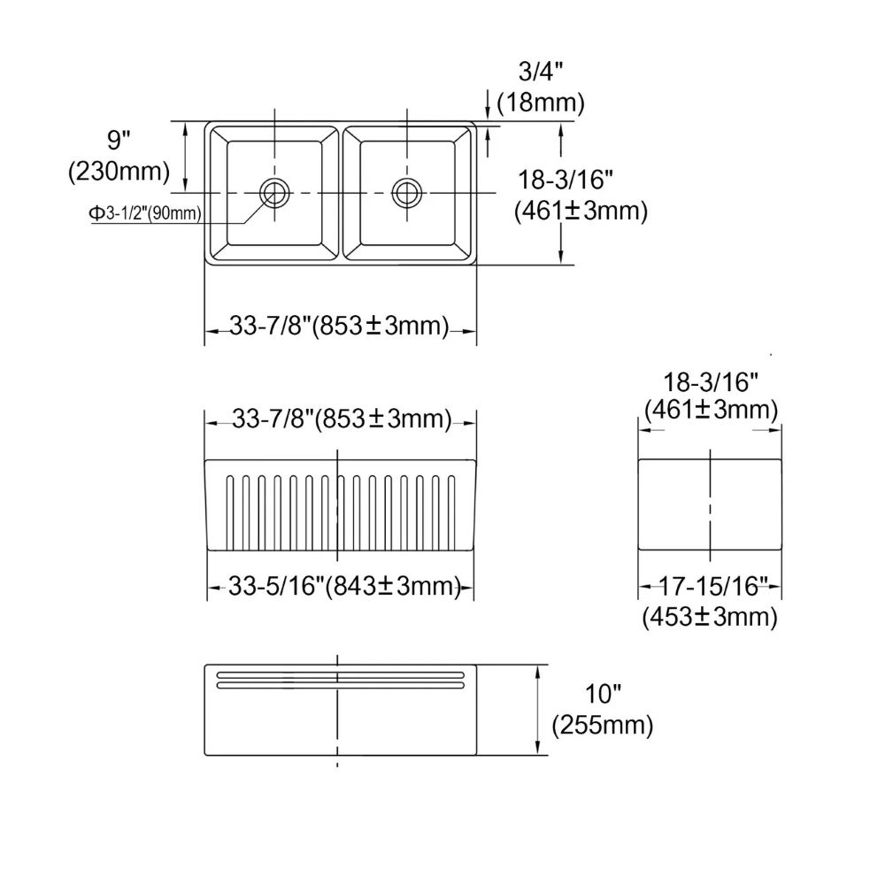 Note: Due to the nature of the material, dimensions should be used only as a guide, each sink can vary 1-2%, It is recommended that the sink is measured on site before cabinetry is built or stone is cut. Ensure your butler sink is provided to your cabinet maker and stone provider to allow them to cut to measure before making cabinetry or cutting stone.