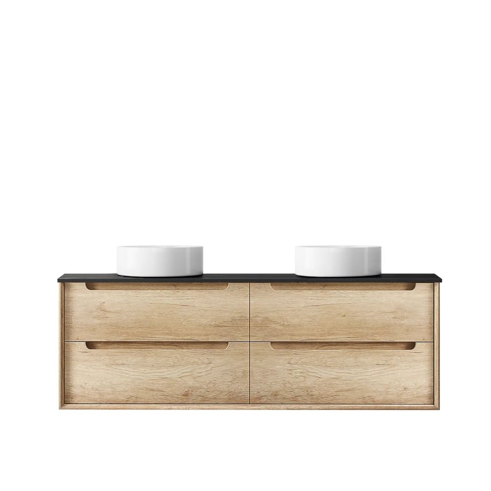 BYRON 1500mm Natural Oak Wall Hung Vanity, Rock Plate Counter Top Empire Black
