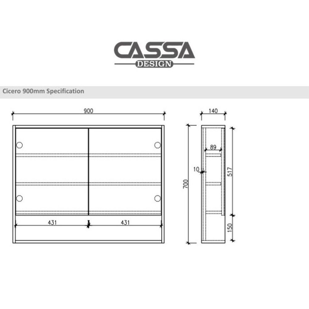 - 900 x 700 x 140mm
