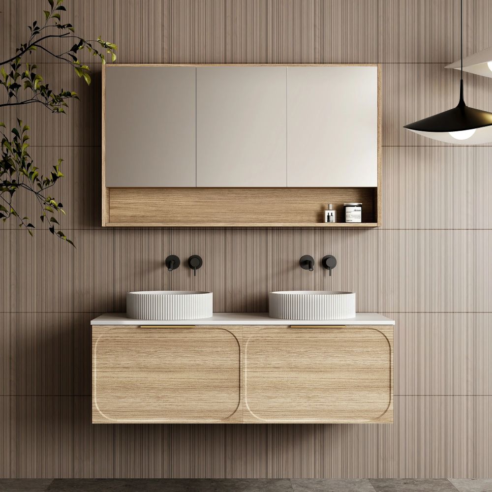 - Thermolaminated Cabinet Finish Available in Natural Oak and Walnut