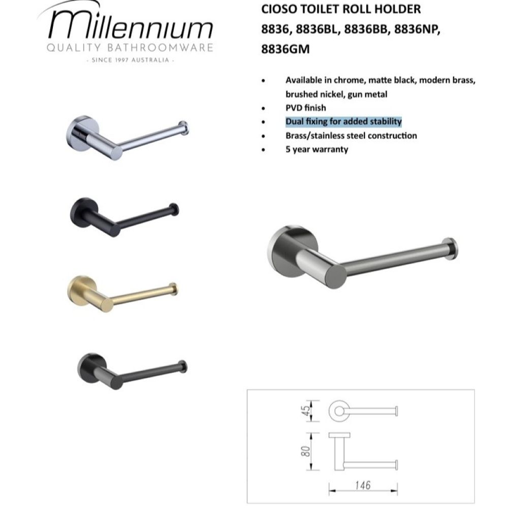 The CIOSO Toilet Roll Holder in Brushed Modern Brass offers a stylish and contemporary addition to any bathroom. Crafted with a sleek finish, this holder keeps your toilet roll easily accessible and adds a touch of sophistication to your space.