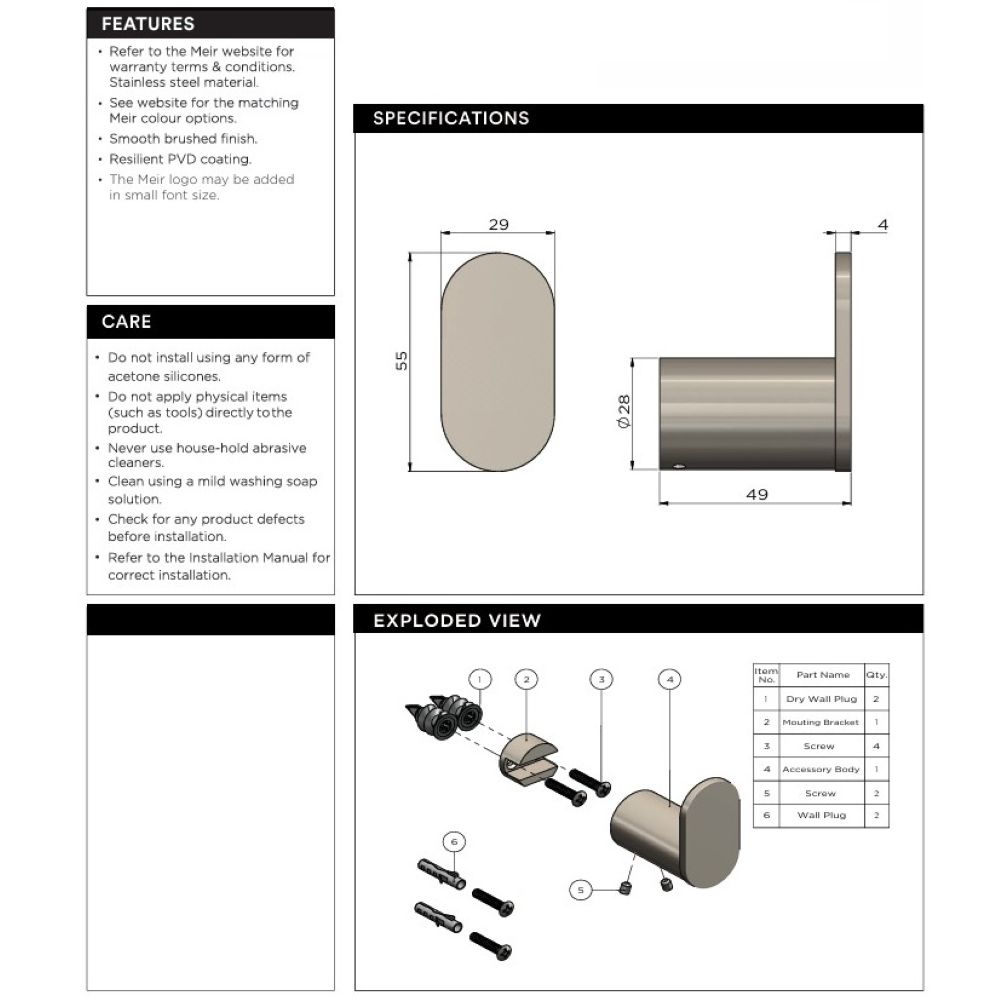 - Designed to Complement Meir Tapware with Durable and Matching Finishes