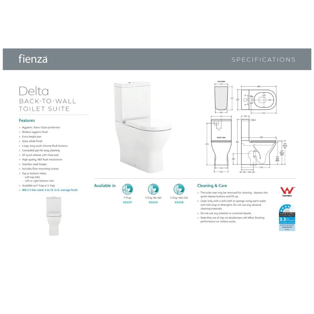 Introducing the Delta Back-to-Wall Toilet Suite in a stunning Gloss White finish. This suite is designed with both S-Trap and P-Trap options, suitable for various installation distances. Its sleek and modern design, paired with its durable construction, makes it an ideal choice for any contemporary bathroom setting.