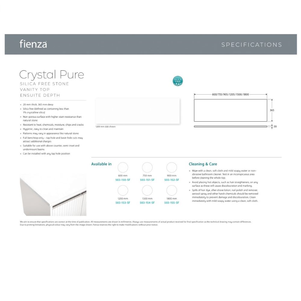 Be the first to review “FIENZA Crystal Pure Silica Free Stone Vanity Benchtop, Rectangular Ensuite Depth 1205mm”