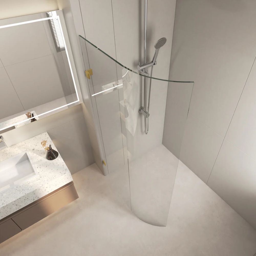 Frameless Curved Glass Walk In Shower Screen, Brushed Gold 0900mm
