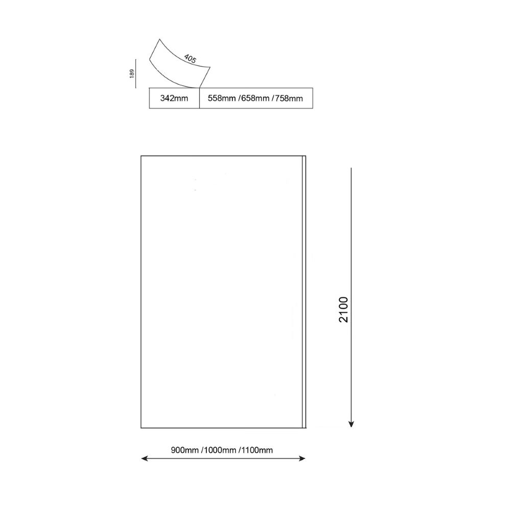Frameless Curved Glass Walk In Shower Screen, Gun Metal 1100mm