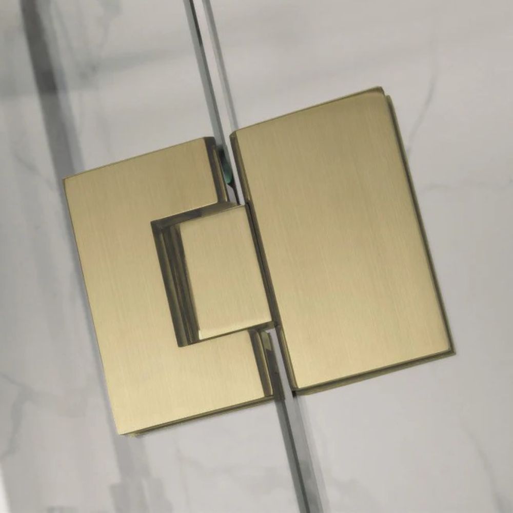 Frameless Square Corner Shower Screen with Hinge Door, Brushed Gold 1100 x 1100mm