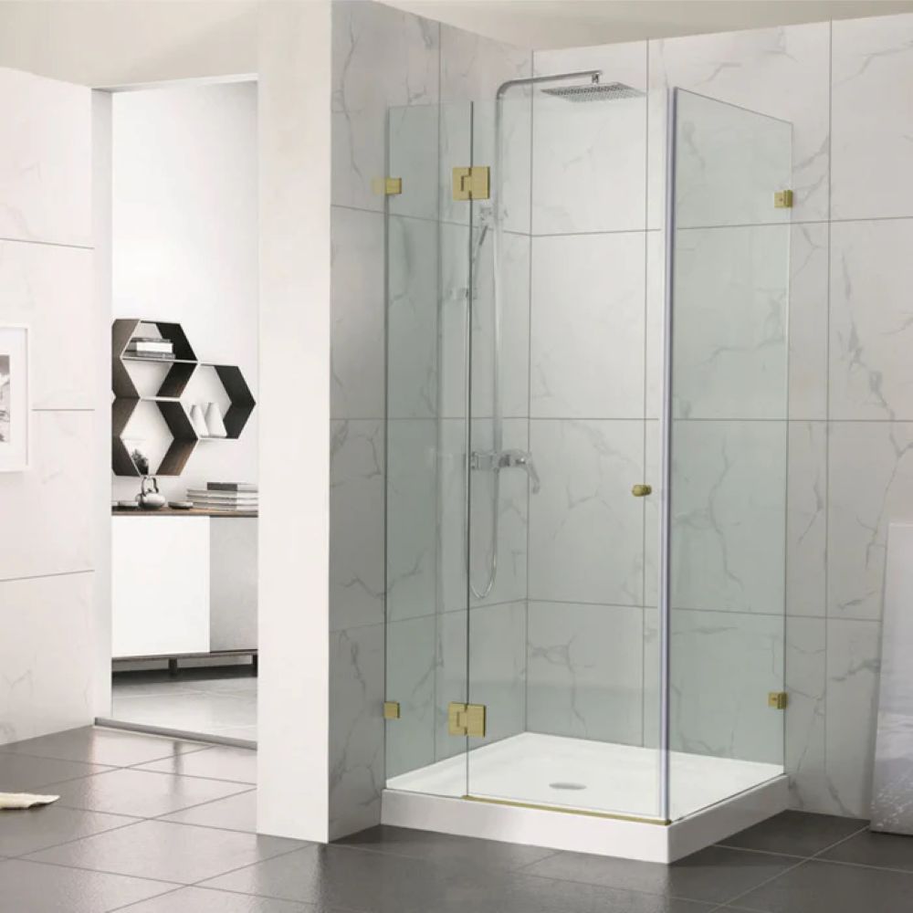 Frameless Square Corner Shower Screen with Hinge Door, Brushed Gold 1200 x 1200mm