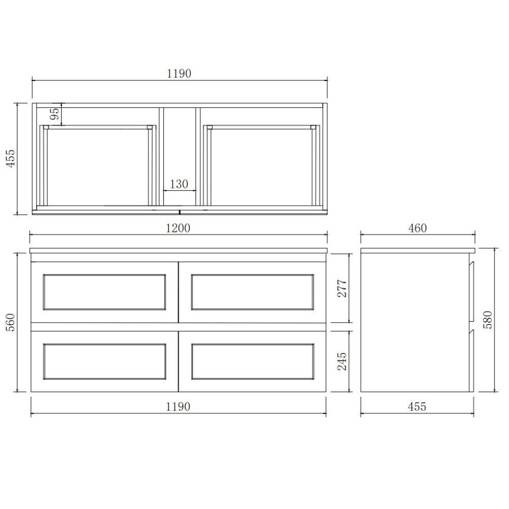 - Dimensions: Length 1200mm, Width 450mm, Height 560mm