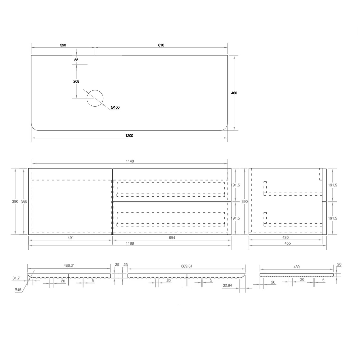 - Elegant R45 Curve Corner With V-Groove Cabinetry