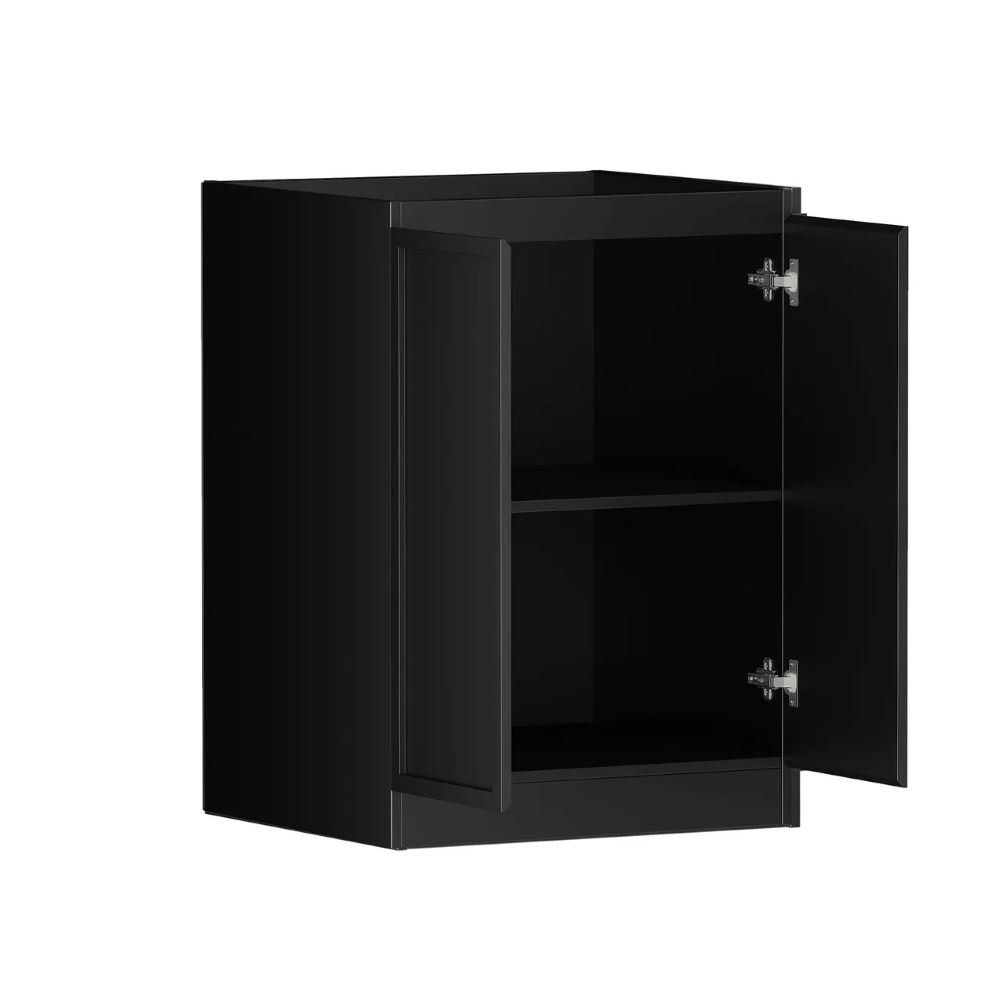 Introducing the Hampshire Black Base Laundry Cabinet, complete with a sleek stone top and convenient sink. Measuring at 1300x600x900, this high-quality cabinet offers ample storage space for your laundry essentials. The stylish black design adds a touch of elegance to your laundry room while providing functionality and durability.