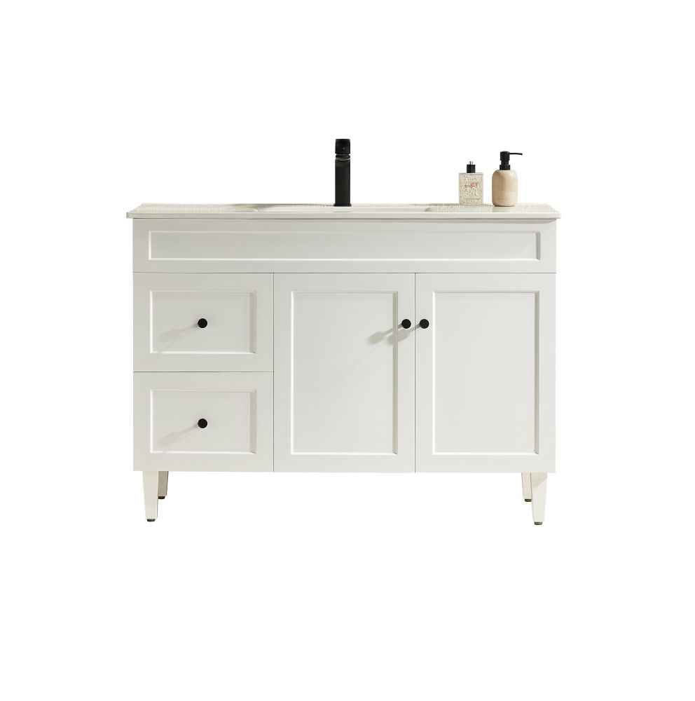 Be the first to review “HARRINGTON PVC 1200mm Matte White Cabinet Only, Left-Hand Drawers Matte White Handle”