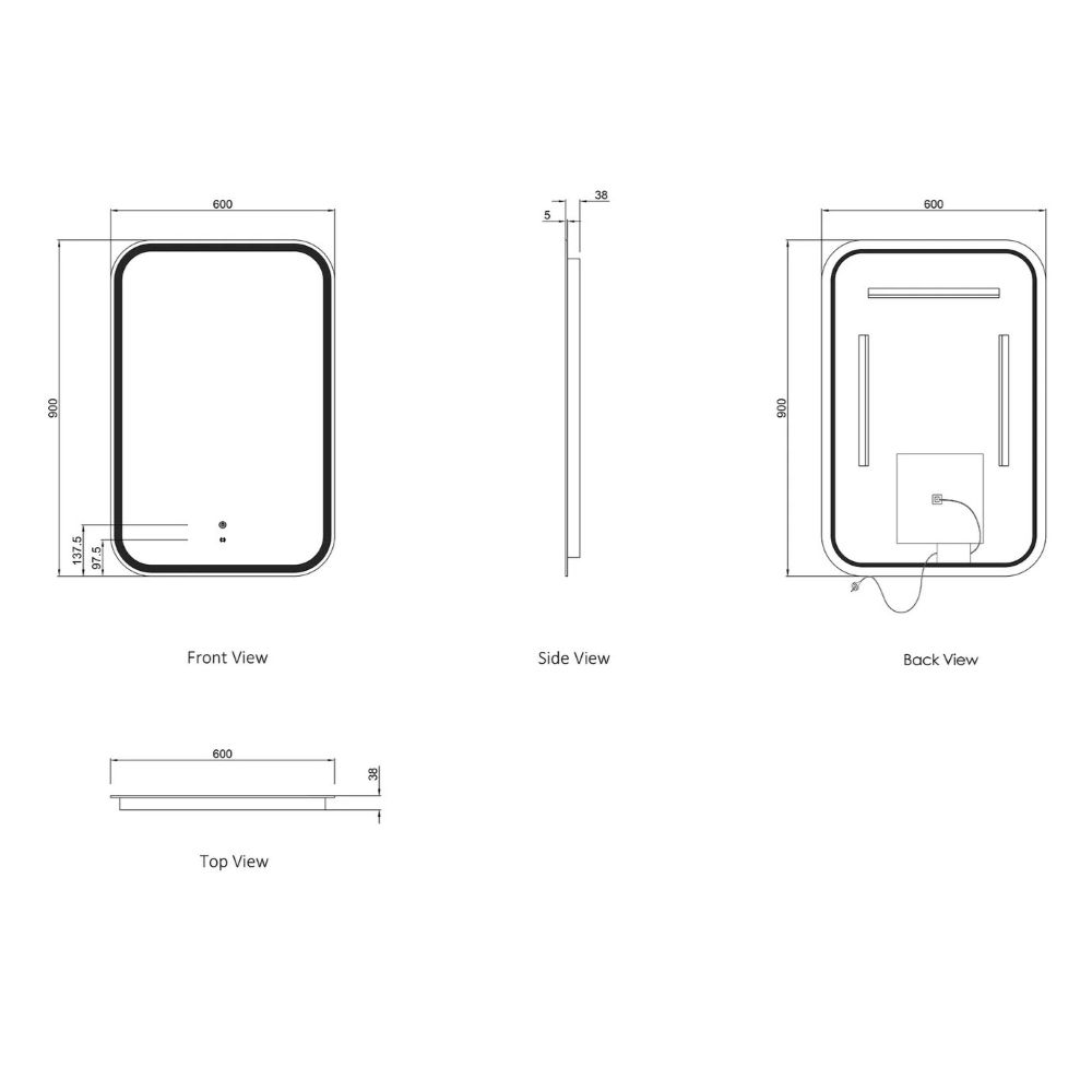 - 900×600 Wall Mounted with Brackets (Vertically or Horizontally)