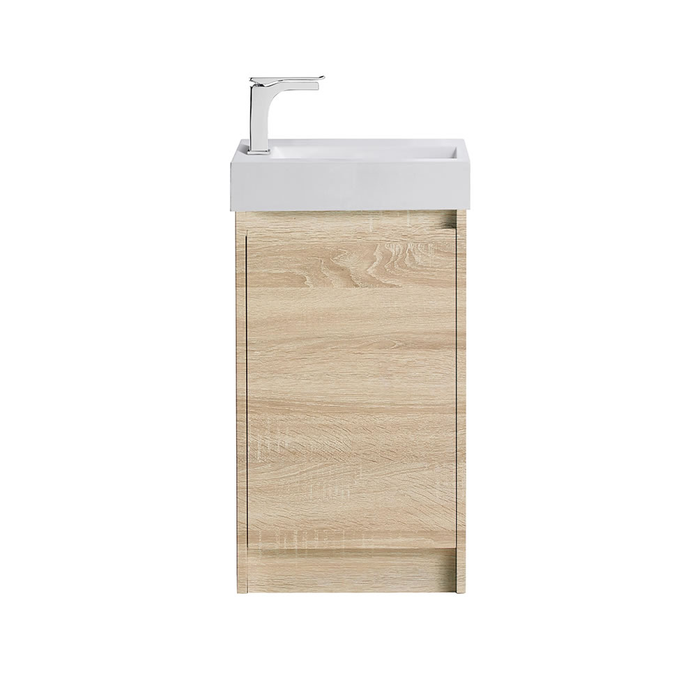 LEGNA Floor Mount Single Basin Mini Vanity, Natural Oak 0450mm with Polymarble Top 02045