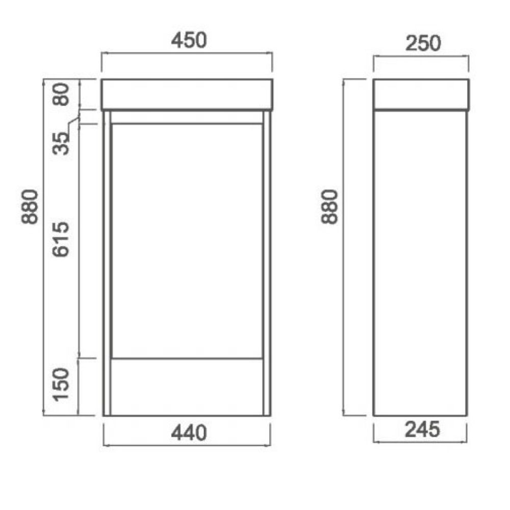 Dimensions 250 × 450 × 880 mm