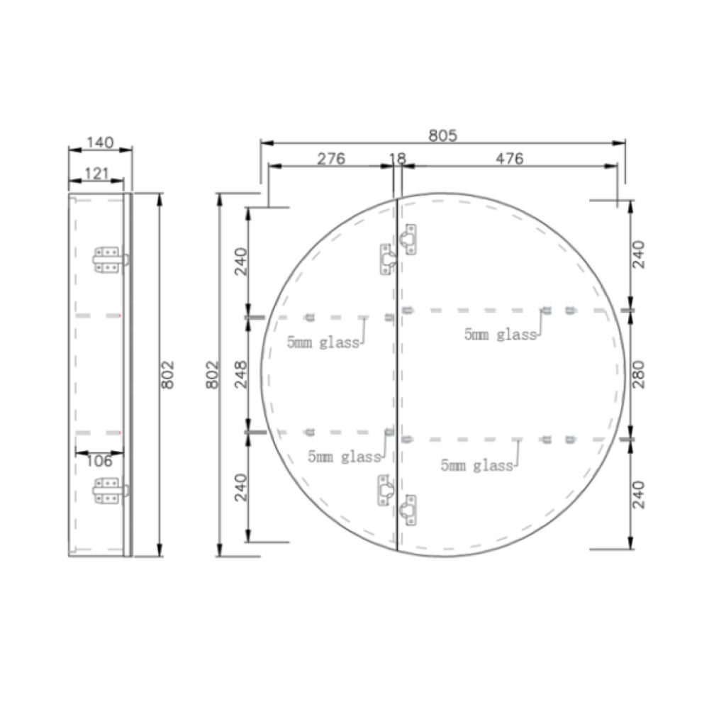 • Mirror Size: 800x800x140mm