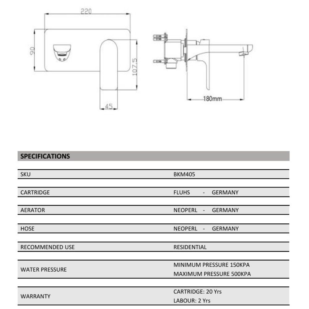 This premium LUXUS Wall Mixer features a sleek design and a generously sized 180mm spout for added convenience. Perfect for both Basin and Bath applications, this mixer combines luxury and functionality in one elegant package. Upgrade your space with this stylish and high-quality fixture for a touch of sophistication.