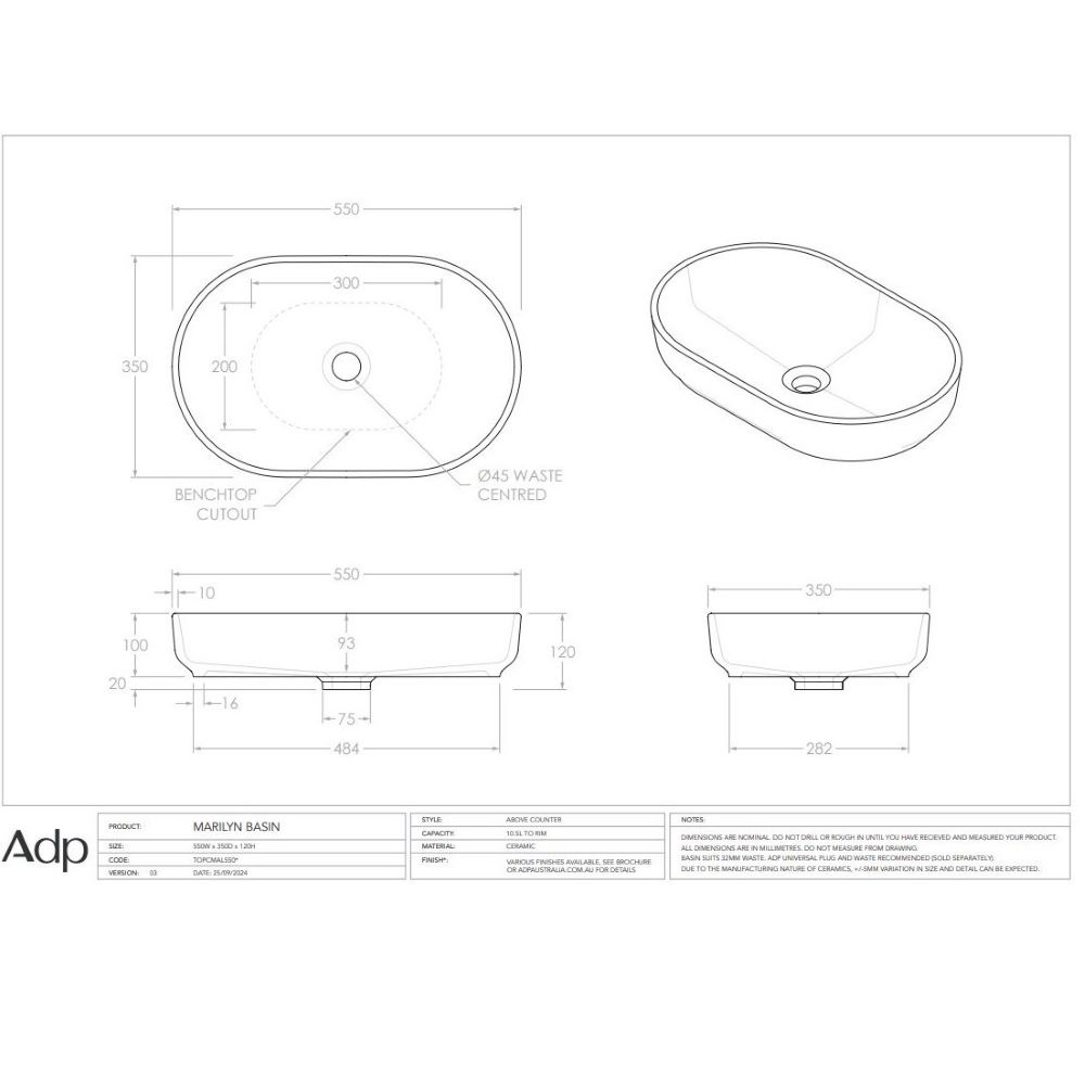 - Due to the manufacturing nature of ceramic, size variation (+/-5mm) is to be expected