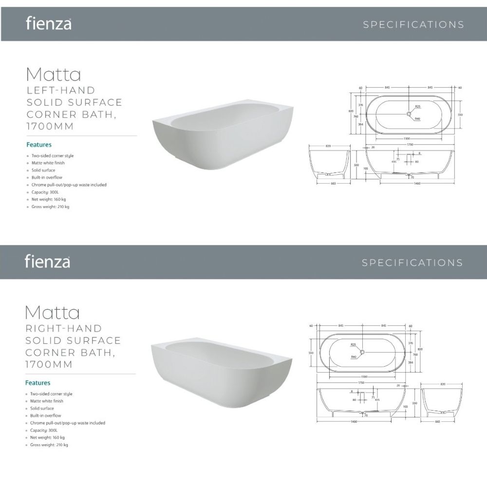 Be the first to review “MATTA Solid Surface 1700mm Corner Bath, Matte White Left Hand Corner”