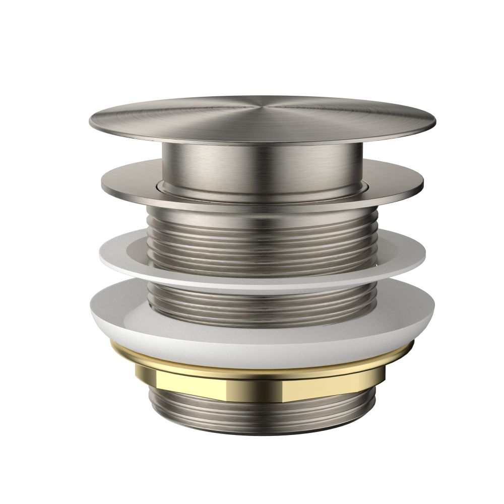 The Modern National Bath Pop-Up Waste in 40mm size is finished in elegant PVD Brushed Nickel. This sleek and stylish pop-up waste is the perfect addition to any modern bathroom, adding a touch of sophistication and functionality to your sink or bathtub.