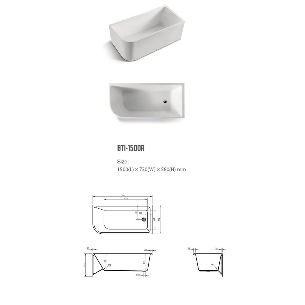 The BNK Modica Corner Freestanding Bath 1500mm and 1700mm is a sleek and stylish option for modern bathrooms. With its contemporary design, this back-to-wall bath offers the best of both worlds by combining the elegance of a freestanding bath with the functionality of an island bath.