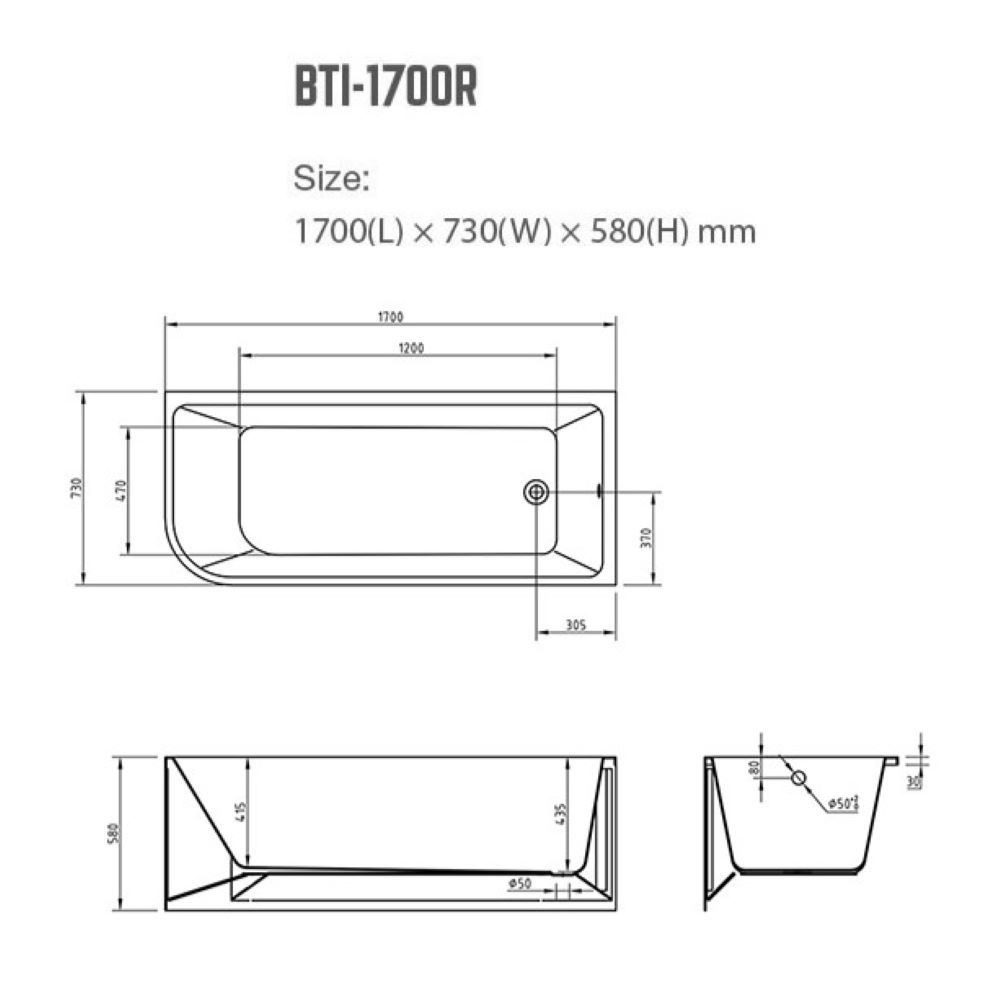 Dimensions 1700 × 730 × 580 mm