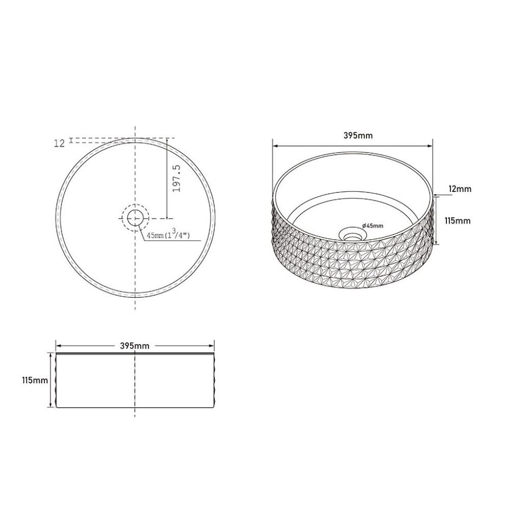 Dimensions 395 × 395 × 115 mm
