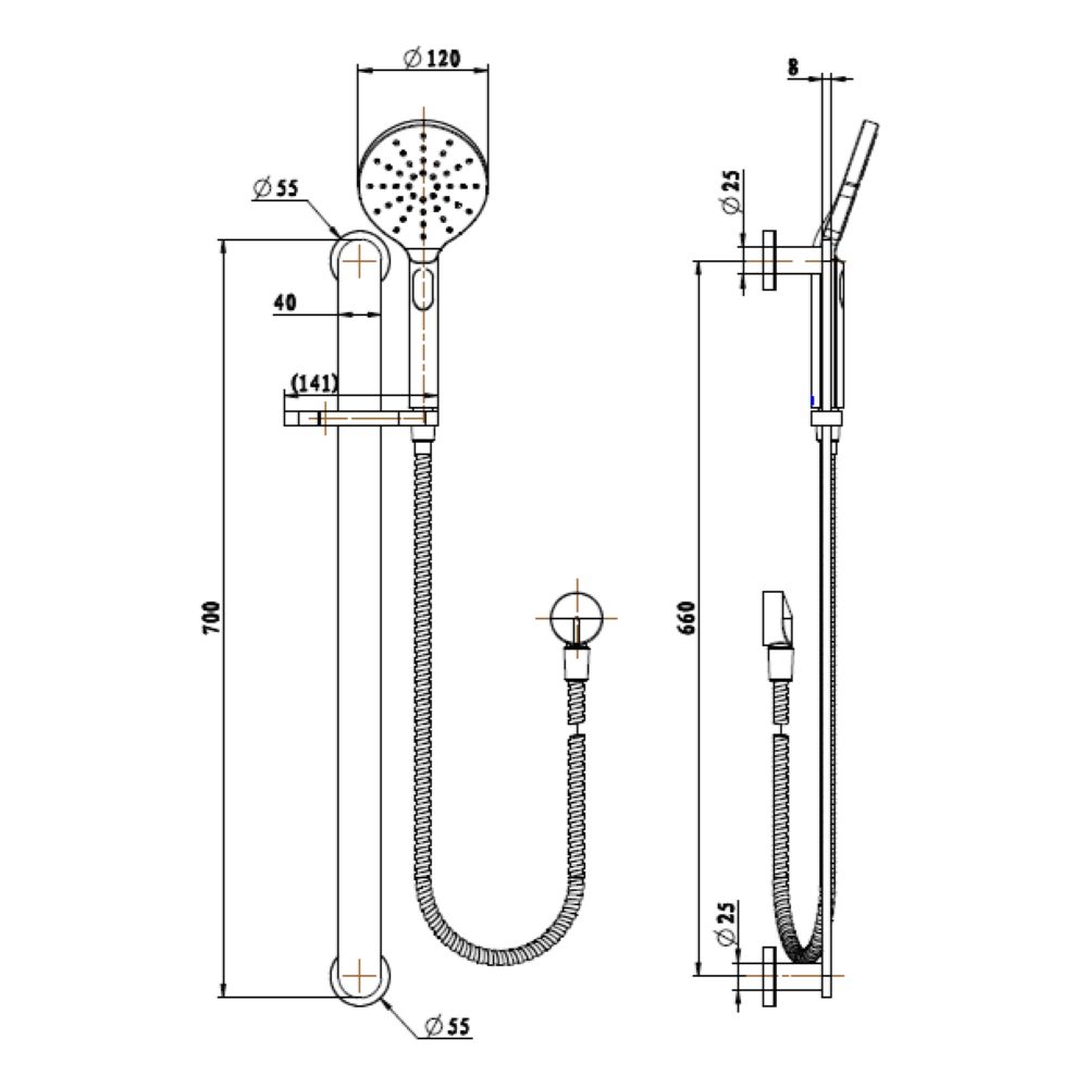 This sleek and modern shower system features a luxurious PVD champagne finish that adds a touch of elegance to any bathroom. The adjustable rail allows for customization to suit your needs. Upgrade your shower experience with the NOVA Shower on Rail in PVD Champagne.
