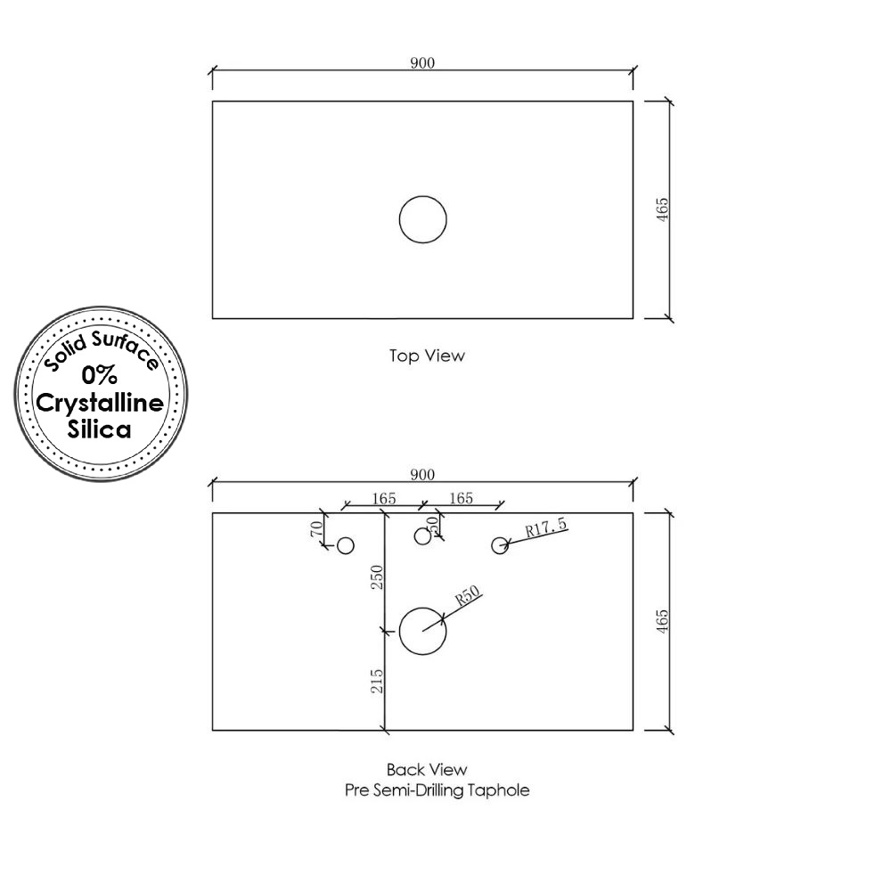 OTTI ULTRA DELUXE Solid Surface Pure White Top Single Bowl 0900mm