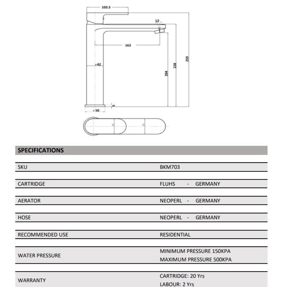• Max Water Pressure 500KPA