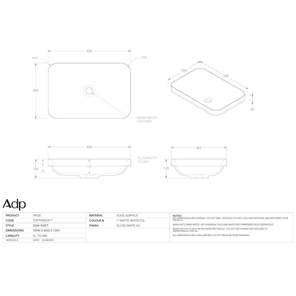 - Available: Gloss or Matte White Solid Surface