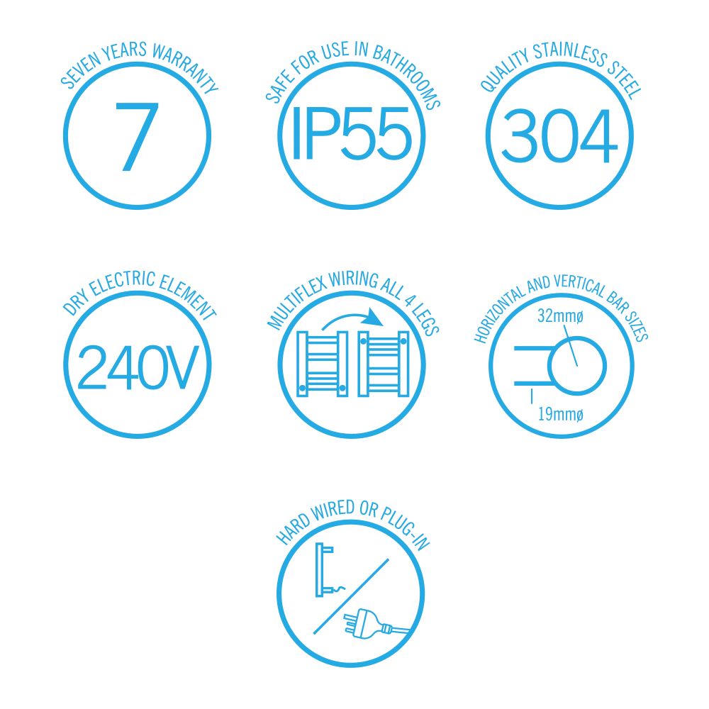 Round Ladder Heated Towel Rail, Chrome, 4 Bar W550xH550xD122mm