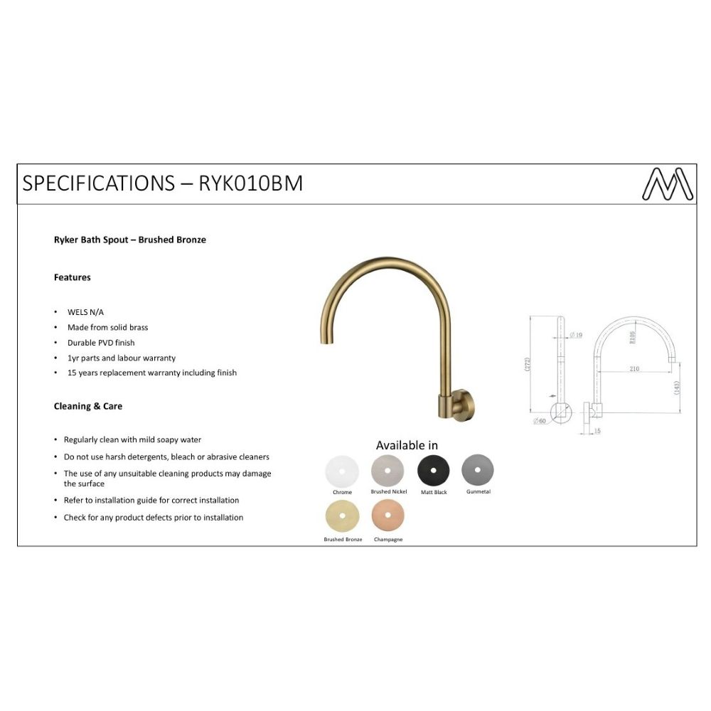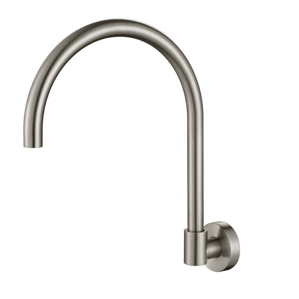 Elevate your bathroom aesthetic with the Modern National RYKER Gooseneck Wall Mount Bath Spout in PVD Brushed Nickel. This stylish and durable tapware features a sleek design and high-quality finish, adding a touch of luxury to your space. Upgrade your bathroom with this modern and sophisticated bath spout today.