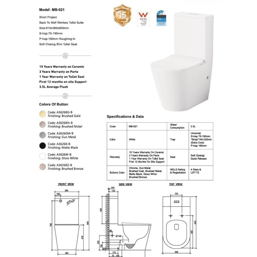 - Short Project Rimless Two-pieces Wall Faced Toilet Suite