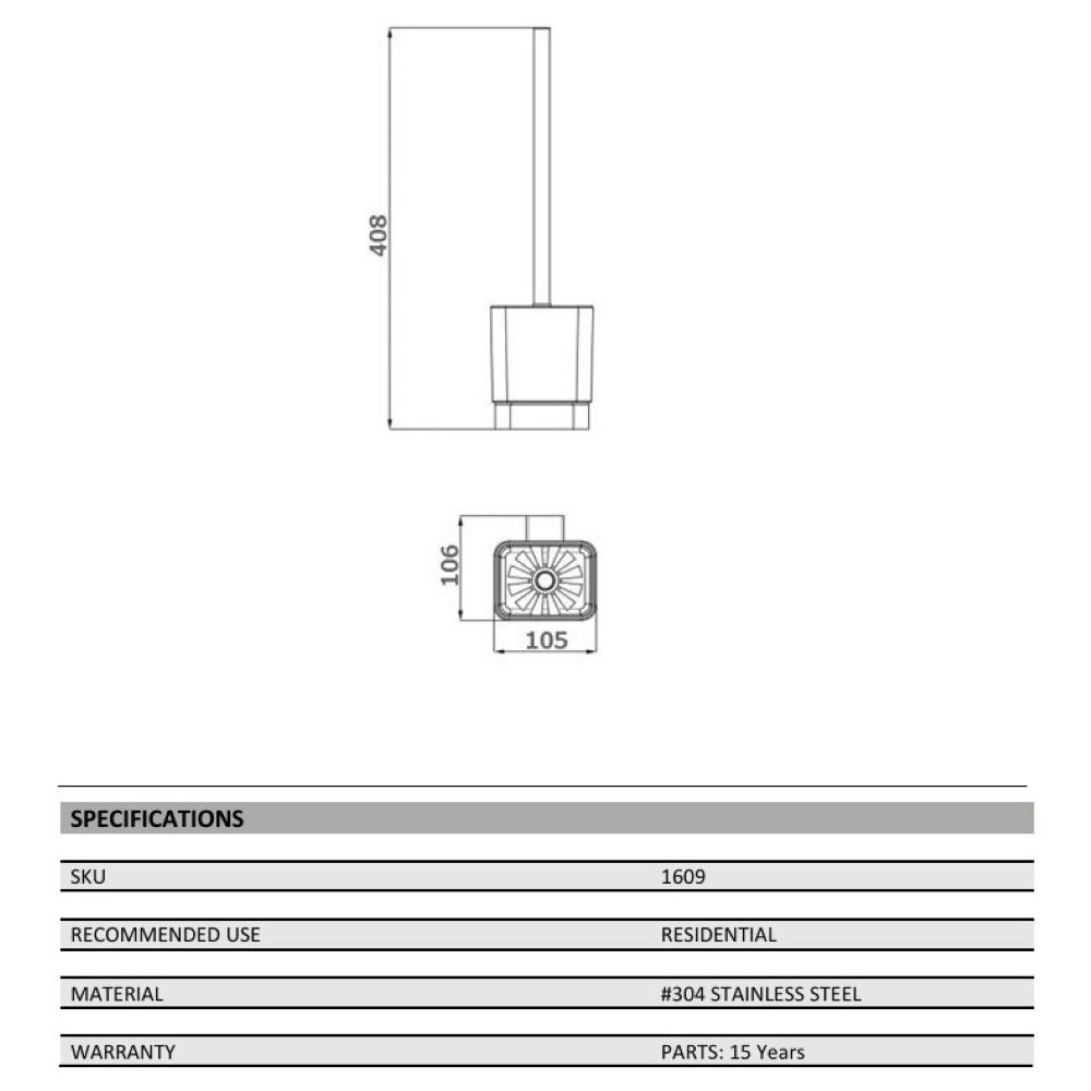 This modern toilet brush holder in a sleek chrome finish is a stylish and practical addition to any bathroom. With its square design, it adds a contemporary touch while keeping your toilet brush neatly stored and easily accessible. Made from durable stainless steel, it is both functional and durable.
