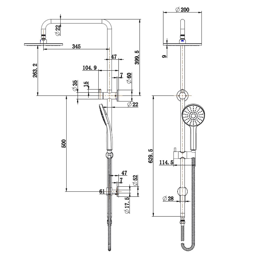 - 200mm Stainless Steel Head
