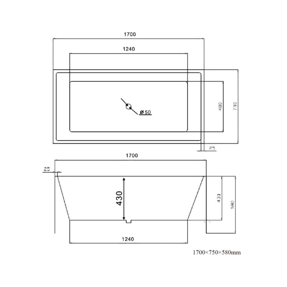 THEO Multi-Fit Freestanding Bath, Gloss White 1700mm Overflow