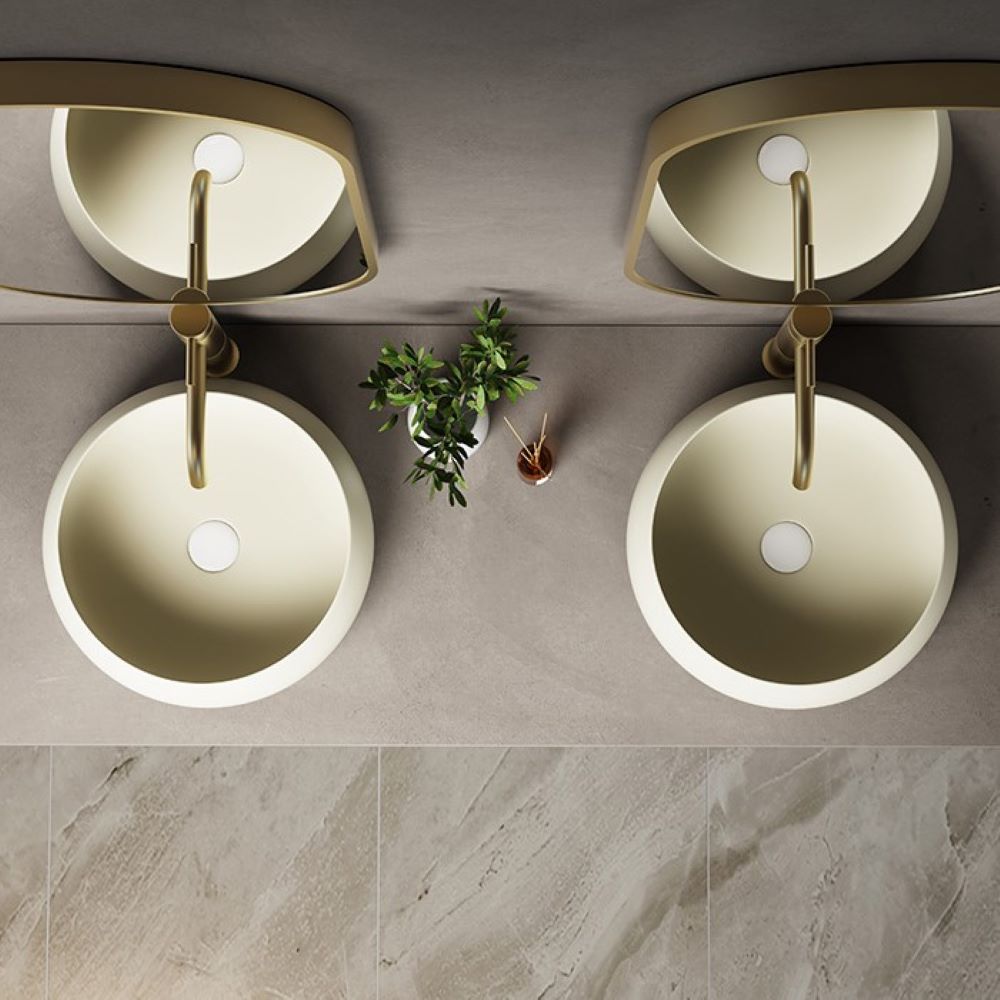 Introducing the stylish and contemporary Versilia Bench Mount Basin in a trendy Matte Khaki finish. With a width of 400mm, this basin is perfect for adding a touch of elegance to your bathroom.