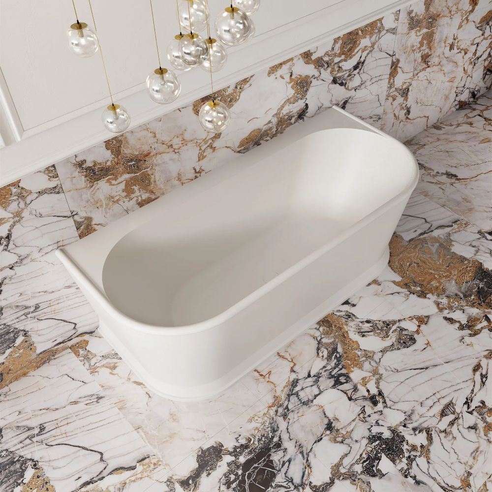 The Westminster Back to Wall Freestanding Bath is available in a sleek Gloss White or Matte White finish and comes in sizes of 1500mm and 1700mm. This elegant bath design features a modern back to wall style that will add a touch of luxury to any bathroom space.